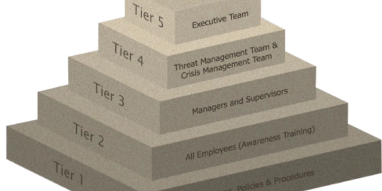 Security Management Solutions, Inc. (SMS) has a strategic partner that has developed a unique five-tiered approach to assist organizations in developing a comprehensive Workplace Violence Prevention and Intervention Program. The design of this program provides an organization with a clear path to consistency with the existing American National Standard WVPI 1-2011, released by SHRM (Society for Human Resources Management) and ASIS (American Society for Industrial Security), published OSHA guidance, and prevailing “Best Practices.” Because these documents are so heavily recognized by the court system, we use this cohesive approach to mitigating an organizations liability exposure from the risk of Workplace Violence. By incorporating these five different components, an organization will have readiness, response, and recovery components included to ensure all employees are prepared and the organization is protected.